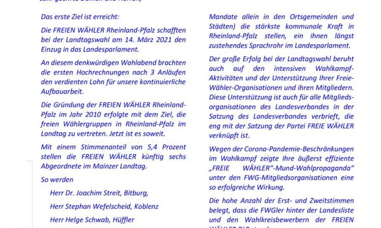 FREIE WÄHLER sind im Landesparlament – Vielen Dank für Ihre Unterstützung
